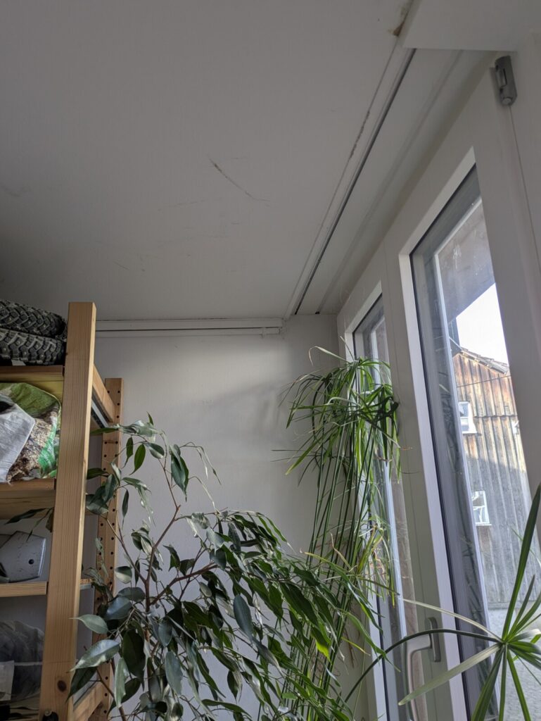 Die Einbausituation ist mit mir selbst schon geklärt: die Glasfaser kommt über die Freileitung im Hof an die Rückwand des Hauses. Oben in der Ecke vom HWR kommt sie rein, und genau dort kann auch die Glasfaserdose und die Glasfaser-Fritzbox oder das Netzabschlussgerät (optisch-elektrisch) hin. Wo die alte Kupferleitung im Haus genau lang läuft, ist mir unklar, auf alle Fälle kommt sie im Wohnzimmer an einer Dose raus. Vielleicht kann ich die zwei Drähte ja für was anderes verwenden 🙂