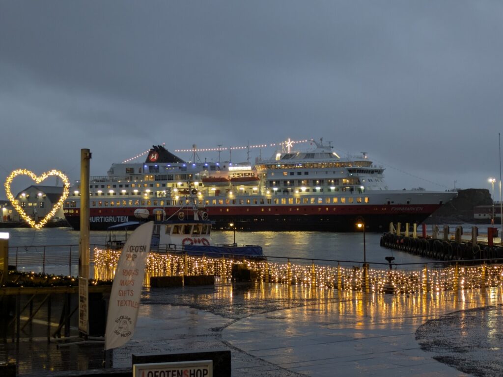 MS Finnmarken beim Ablegen in Svolvær am 17.12.